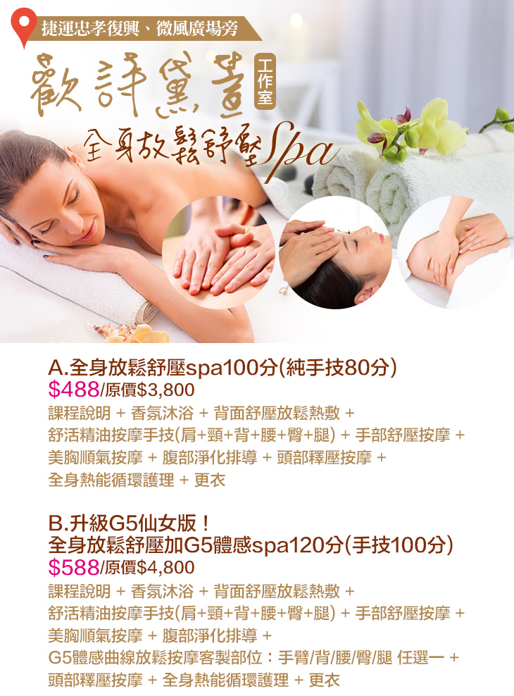 B.升級G5仙女版!全身放鬆舒壓加G5體感spa120分(手技100分)