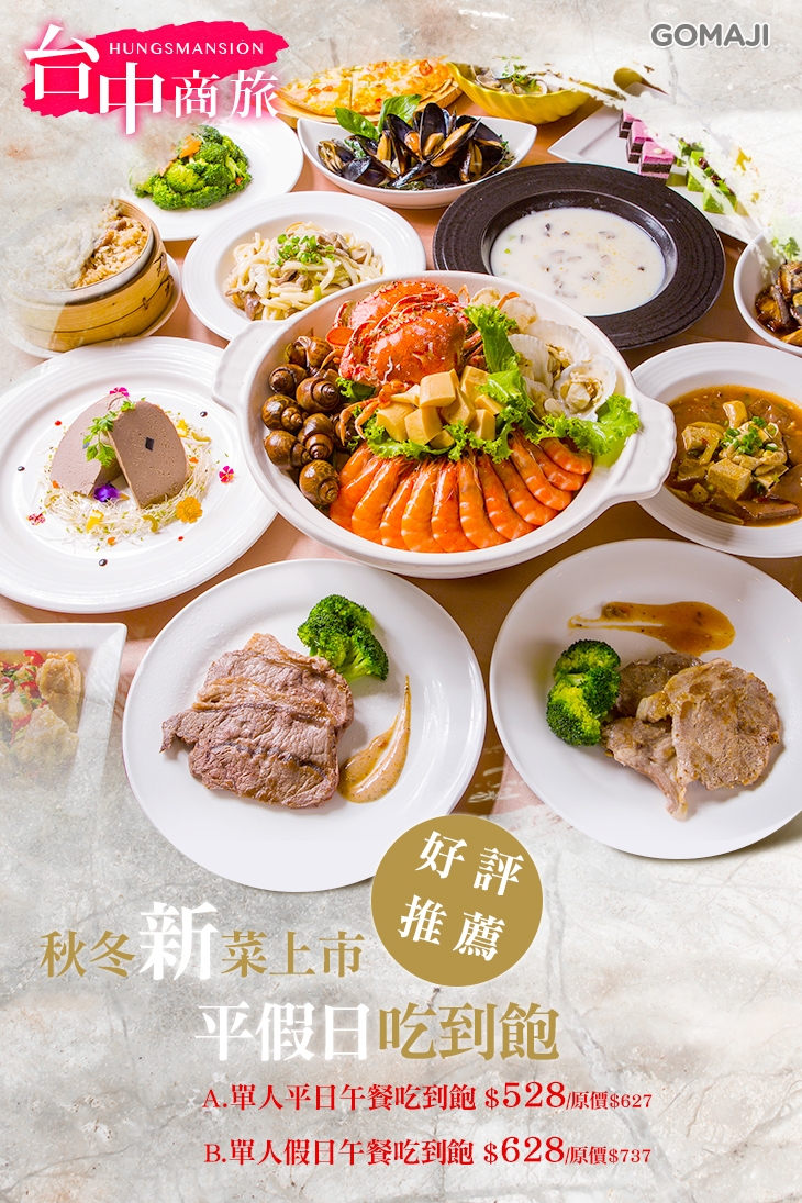 獨特的美學風格,優雅貴氣的挑高大廳,走進台中商旅,彷彿步入歐式豪宅庭園!樸實雅緻的原木色調,以紗窗巧妙地與交誼廳區融為一體,灑入滿室溫暖,讓人好似身處家中那般慵懶自若!特聘請星級主廚呈現異國風情美饌,精選食材絕對讓您允指大動,亦貼心提供全天候咖啡熱茶及小點心,溫暖您的味蕾。