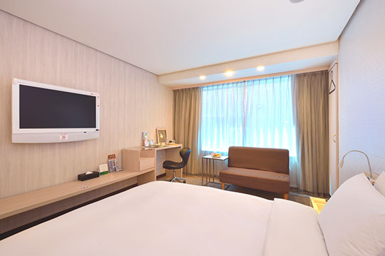 風格簡約時尚,乾淨舒適,導入新一代的客房設備模組,每房均備有:行動電話充電站、37吋液晶電視、日本BS衛星電視共8個頻道及Panasonic溫水洗淨便座,以旅行者全面需求為目標,給您最無微不至的照顧!