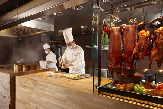 粵菜廳以現代東方的設計風格,融合了臨窗河畔花園美景。從開放式廚房,欣賞主廚現場表演拿手料理。當您品嘗鮮美料理和精緻港點時,還可搭配台灣的優質好茶。