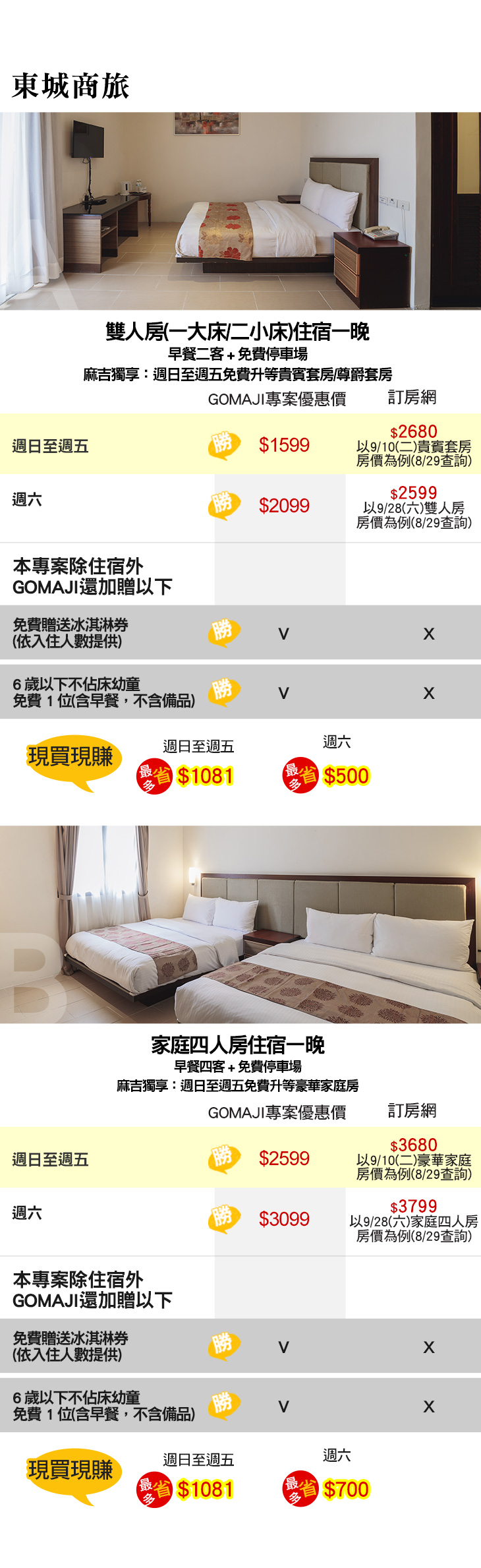 ★ 麻吉獨享:1.週日至週五免費升等房型、2.免費贈送冰淇淋券!