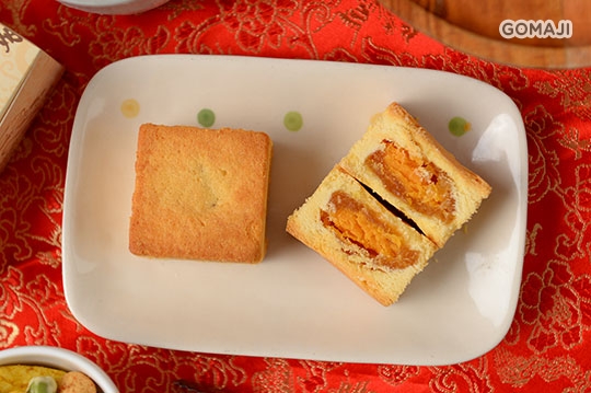 鳳梨的閩南語為「旺來」,帶有吉利興旺的意思,是春節餽贈親友的最佳伴手禮,鳳黃酥就是鳳梨內餡加入鹹蛋黃,它的迷人之處就在於香濃爽口的餅皮,加入天然奶油及起士粉攪拌烘焙後,產生令人難忘的香味,黃金比例的融合更是精華所在,其香氣濃郁迷人,多層次的口感極具特色!