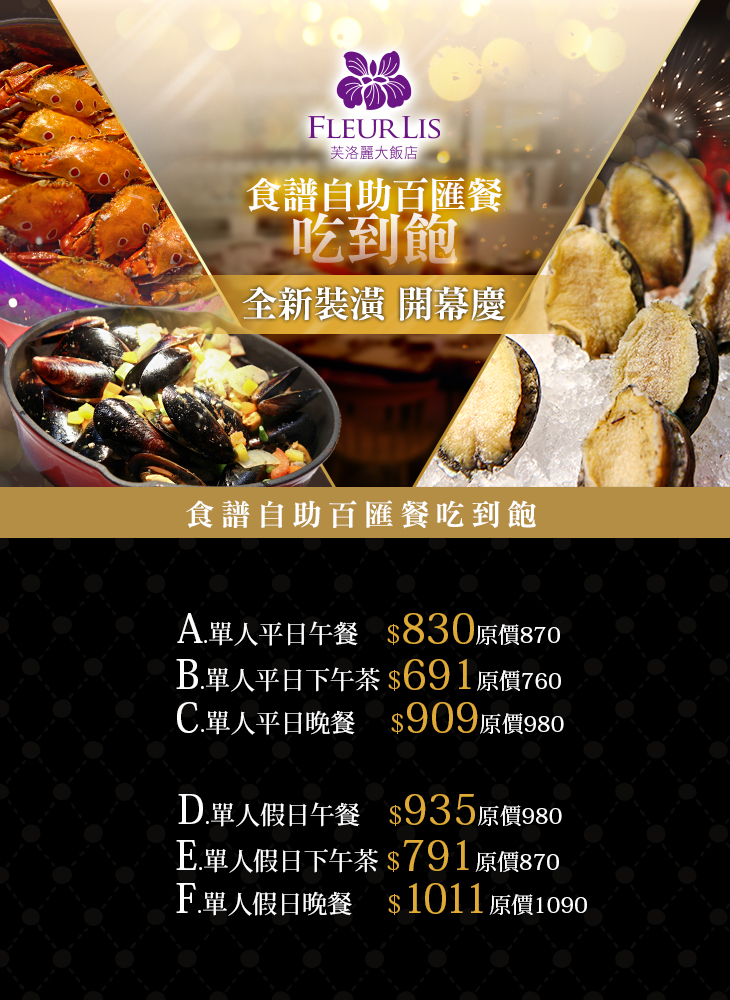 F.單人假日晚餐食譜自助百匯餐吃到飽