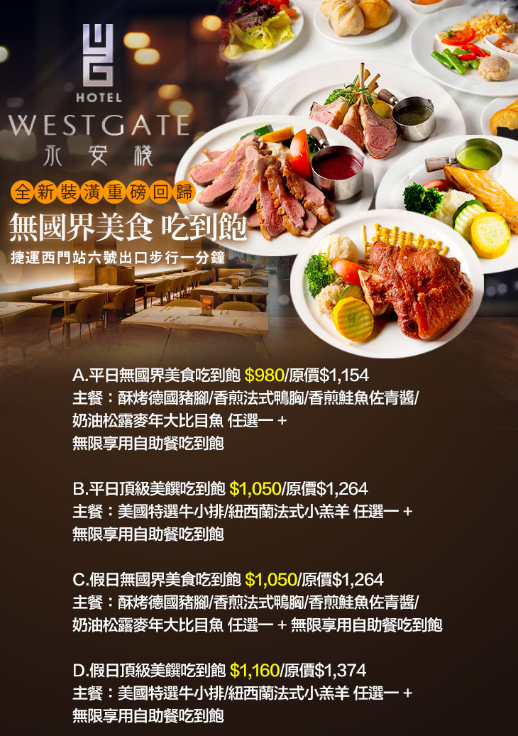 A.平日無國界美食吃到飽 / B.平日頂級美饌吃到飽 / C.假日無國界美食吃到飽 / D.假日頂級美饌吃到飽