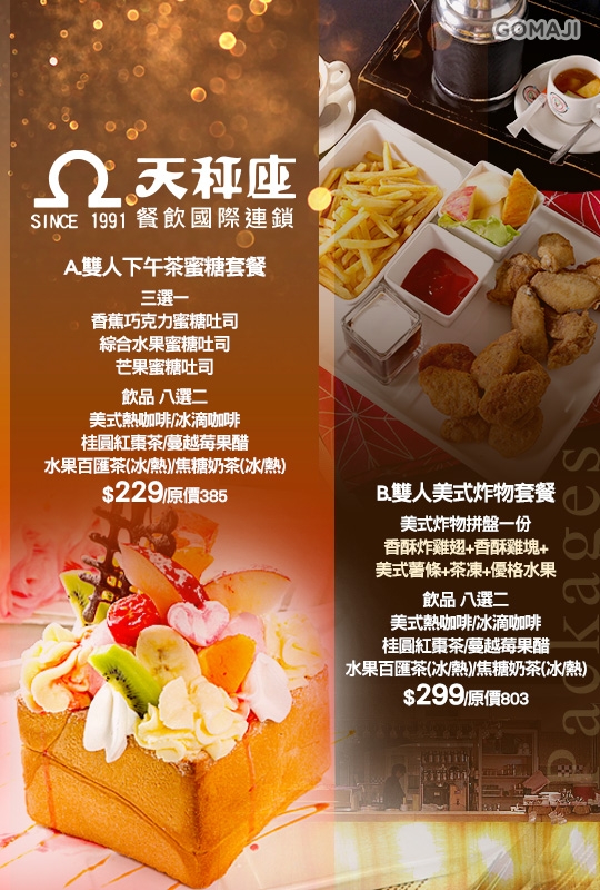 與麻吉邊聊邊吃香酥可口的炸物,實在超涮嘴~超值美式炸物拼盤組合再搭配兩杯飲品,讓你與麻吉相聚更加開心~