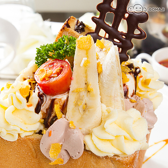 巧克力獨特誘人的香氣,與香甜帶點微苦的滋味,令人深深著迷,搭配新鮮的香蕉,甜軟綿密,卻不膩口,搭配滑順美妙的鮮奶油,還有香軟的吐司,享受幸福甜蜜的美好下午~