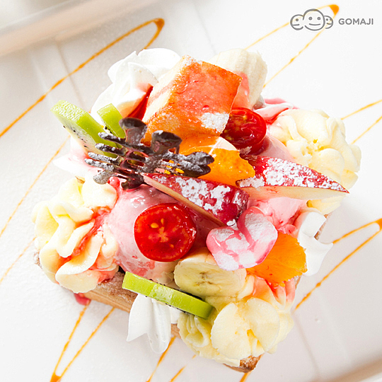 不用擔心太甜的甜點,就是有著滿到要溢出來的綜合水果蜜糖吐司,有著各式各樣的新鮮水果,細心的色彩搭配相當亮眼,自然的酸甜口感相當清爽~