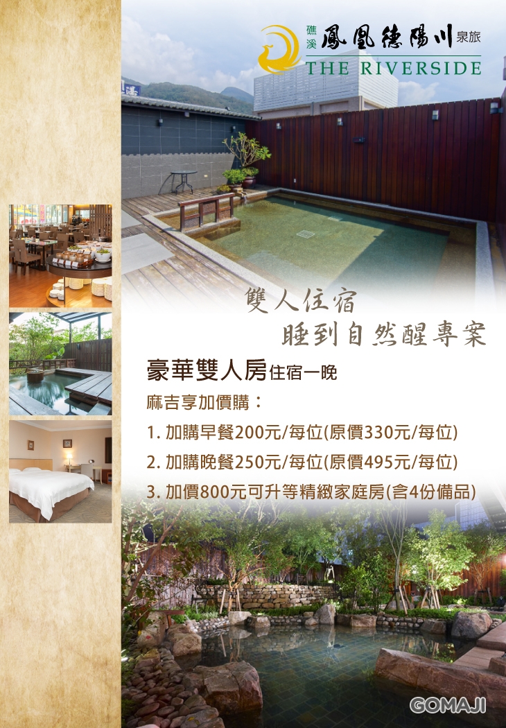 【礁溪-鳳凰德陽川泉旅The Riverside】感謝麻吉們熱烈搶購,已全數賣光光。
