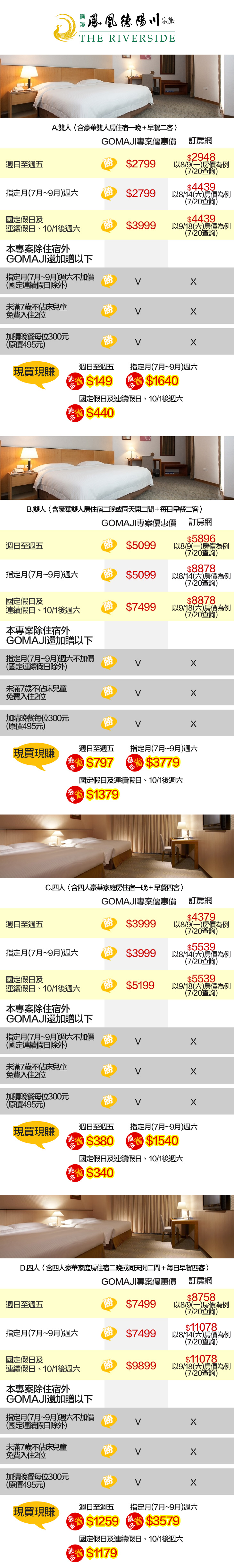 ★ GOMAJI下訂,優享指定月(7月~9月)週六不加價(國定連續假日除外)!機會難得,要搶要快!