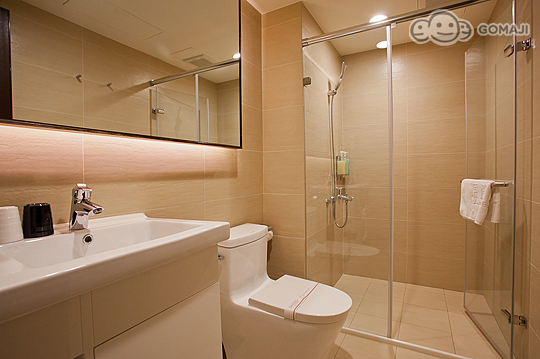 大面磁磚鋪滿牆面和地板,充足的光線讓整個浴室維持整潔明亮的調性;乾溼分離的設計,讓您在使用上更為便利舒適,暢快洗去一身的疲備,盡享假期最放鬆的時刻吧!