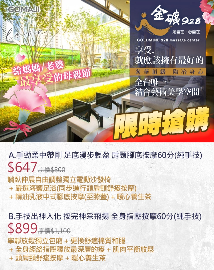 【金礦928頂級足體舒壓會館】感謝麻吉們熱烈搶購,已全數賣光光。