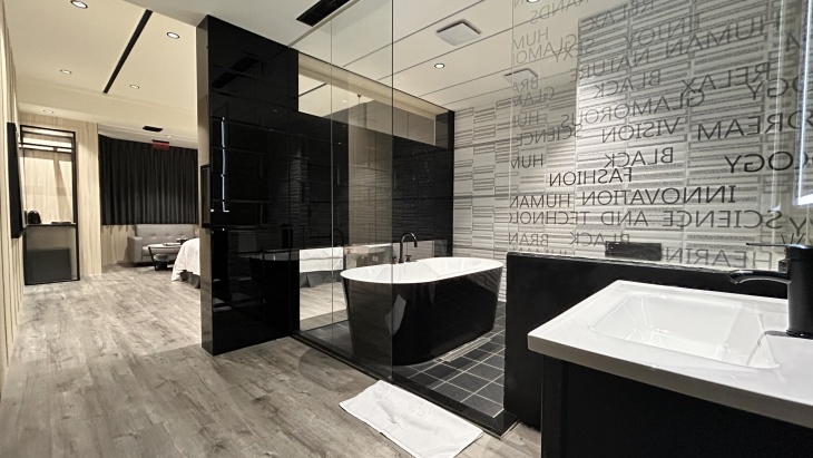 走進這間客房,映入眼簾的是沉穩優雅的灰階設計與溫潤木質元素交織出的質感空間。柔和燈光從天花板與床側緩緩灑落,營造出靜謐放鬆的氛圍,使人一踏入就能卸下整天的疲憊。寬敞舒適的大床搭配細緻柔軟的寢具,帶來一夜好眠,房內還特別配置頂級按摩椅,讓您在旅途中也能徹底舒壓,享受專屬的放鬆時刻。