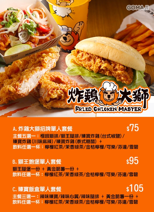 貼近年輕朋友的潮流享樂;三五好友 Party 的必備點心。【炸鷄大獅】挾著雞肉達人的專業,嚴選有履歷的健康雞肉,在專家研發的配方下,打造「香透你嘴,汁汁入味」的感動。不管是「臻寶 JIMBO」或「極餓獅排」等各種人氣炸雞產品,每一口都能像華爾滋般的溜進您的嘴裡。每次相聚最需要的歡樂伙伴,「大獅的炸雞,炸雞大獅」與年輕人永遠膩在一起!
