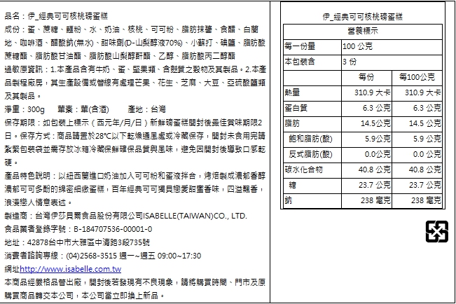 2015 年、2016 年連獲國際幸福點心冠軍,屢屢受肯定,並投保 2000 萬元產品責任險,提供您安全無虞的產品品質,期望您能感受伊莎貝爾的全「心」服務。