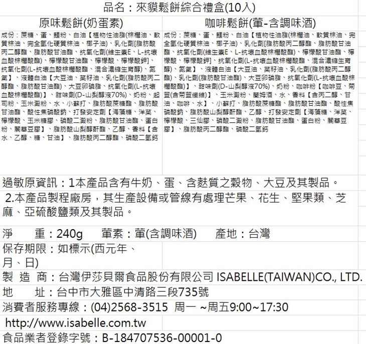 B.伊_來貘鬆餅綜合禮盒(十入)