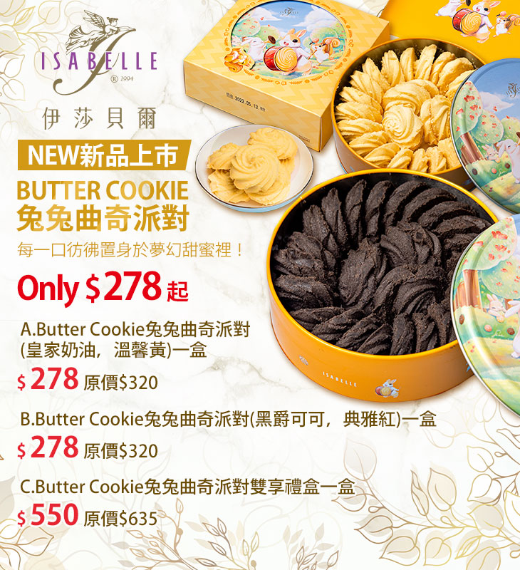 【ISABELLE 伊莎貝爾】最有人氣的曲奇餅餅乾,如棉花糖般入口即融的口感是最大特色,大人小孩都喜愛的口味,擁有月賣千盒的魅力~