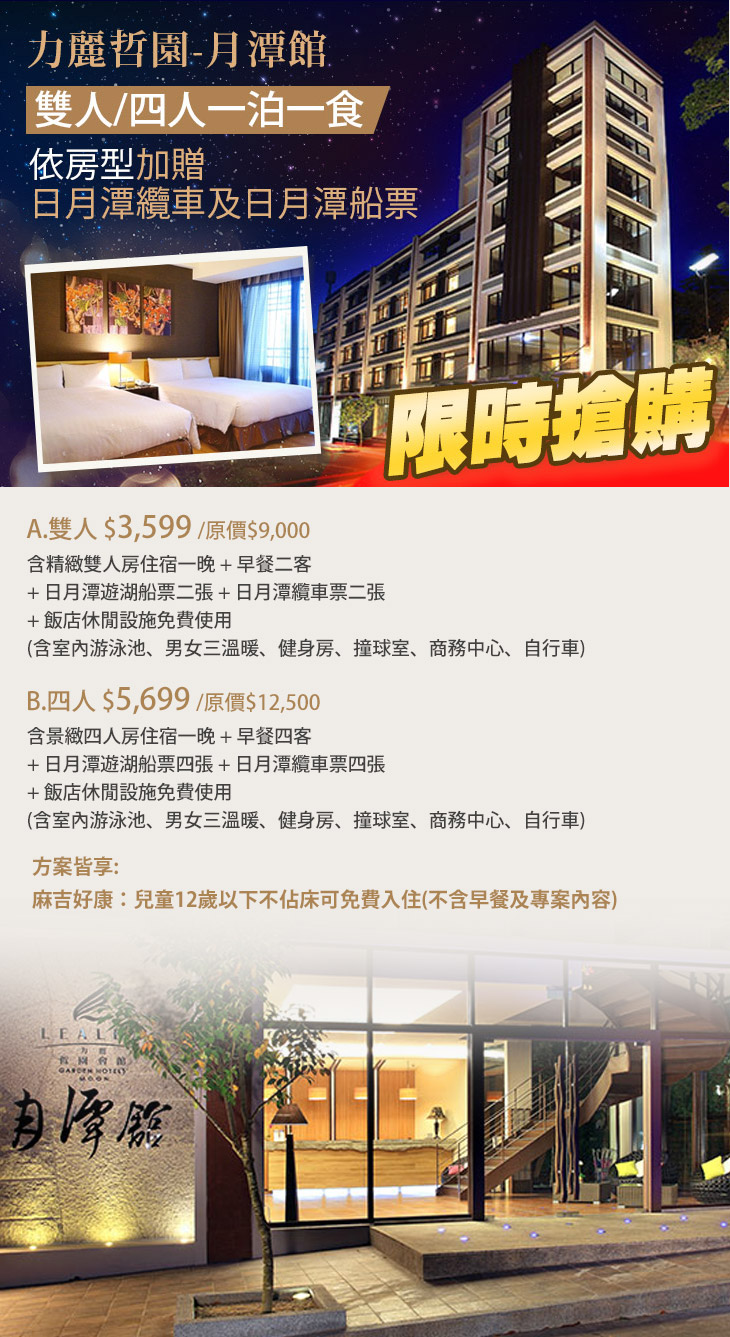 ★ 雙人/四人住宿含早餐,依房型加贈日月潭纜車及日月潭船票,手刀搶房趁現在!