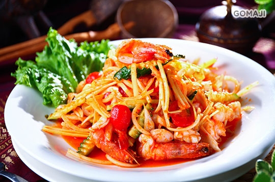 涼拌海鮮沙拉一份 + 月亮蝦餅一份 + 清蒸檸檬鱸魚一份 + 泰式檸檬雞一份 + 辣炒高麗菜/蝦醬空心菜 二選一份 + 綠咖哩椰汁牛/紅咖哩椰汁雞 二選一份 + 辣炒打拋豬一份 + 酸辣海鮮湯/椰漿雞湯 二選一份 + 綜合水果一份 + 泰式甜點一份 + 泰國茉莉香米無限量供應,以上均為合菜份量