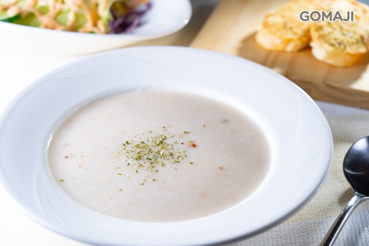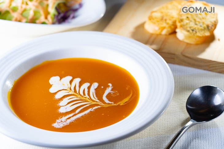 嚐完清新爽口的冰涼沙拉後,緊接著就拿起湯匙輕啜濃湯吧!真材實料下去熬煮的濃稠湯汁,每一口都讓麻吉心滿意足的感動,溫潤你我的心脾!