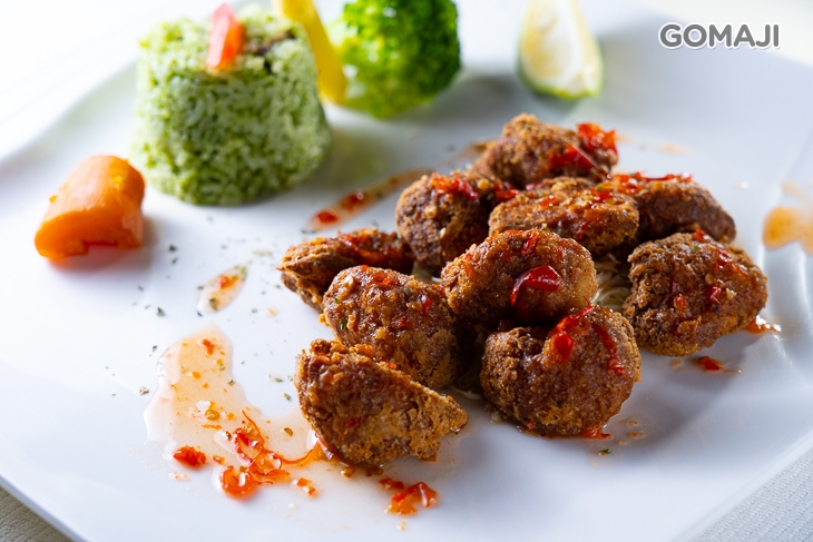 一次獻上多顆泰式香檸酸辣猴頭菇,澆淋主廚獨門的辣醬汁,濃郁香醇的氣味,就像天雷勾動地火般,讓麻吉迫不及待拿起刀叉享用,酥脆帶著鮮汁的口感,在舌尖滑動超級過癮!