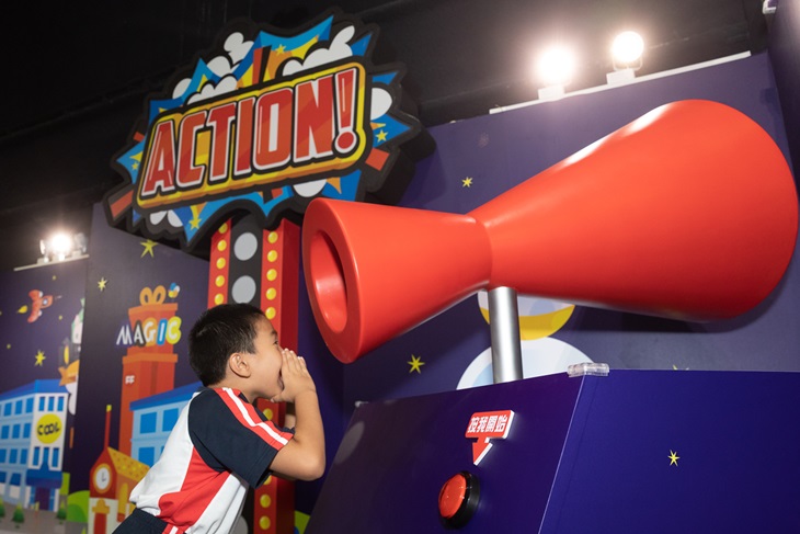 展場透過結合超過10種新奇有趣的互動數位科技,在遊戲中帶您認識劇組工作人員的職業特色,更打造出音樂劇、冒險片與科幻片三大片場,以及隱藏幕後的聲音製造所與時光道具屋,同時還能進入主題攝影棚拍出自己專屬的發行海報。