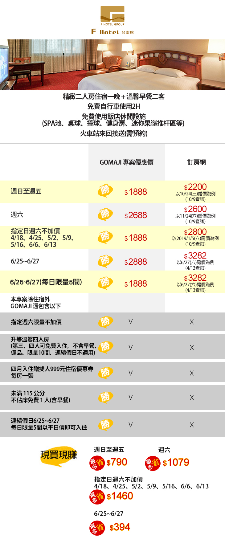 【F HOTEL 台南館】感謝麻吉們熱烈搶購,已全數賣光光。