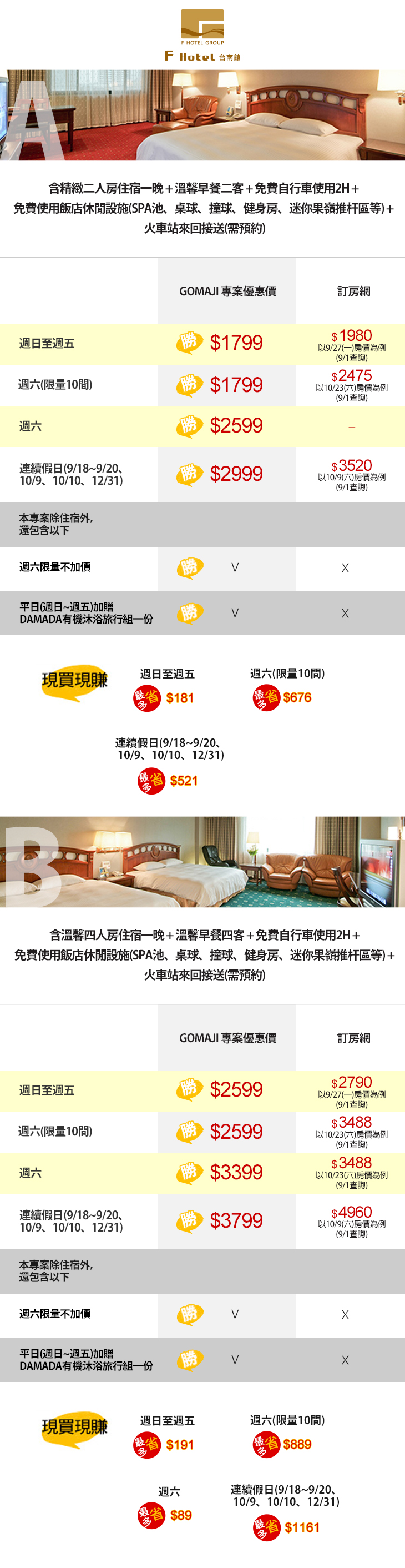 【F HOTEL 台南館】感謝麻吉們熱烈搶購,已全數賣光光。