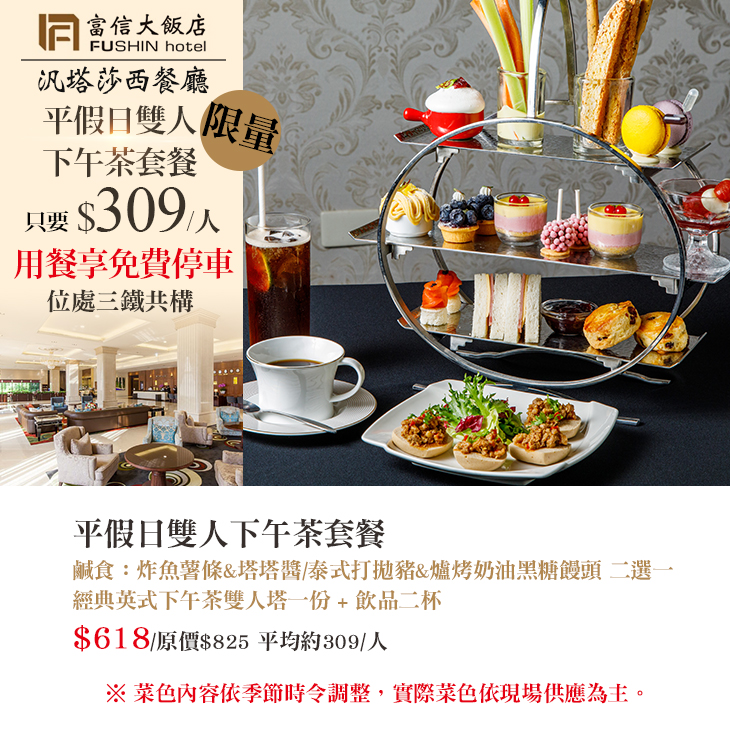位處三鐵共構,限量!平假日雙人下午茶套餐
