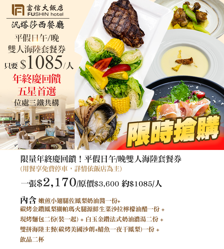 【台北富信大飯店-汎塔莎西餐廳】感謝麻吉們熱烈搶購,已全數賣光光。