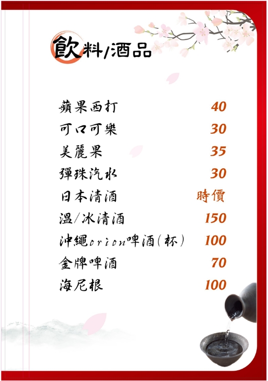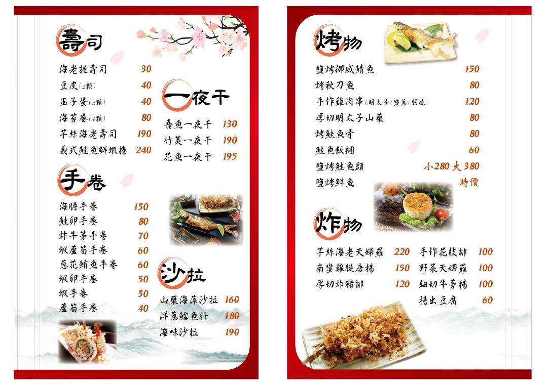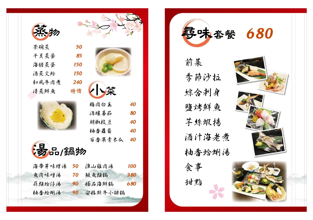 ※ 菜色內容依季節時令適當調整,實際菜色以現場供應為主。