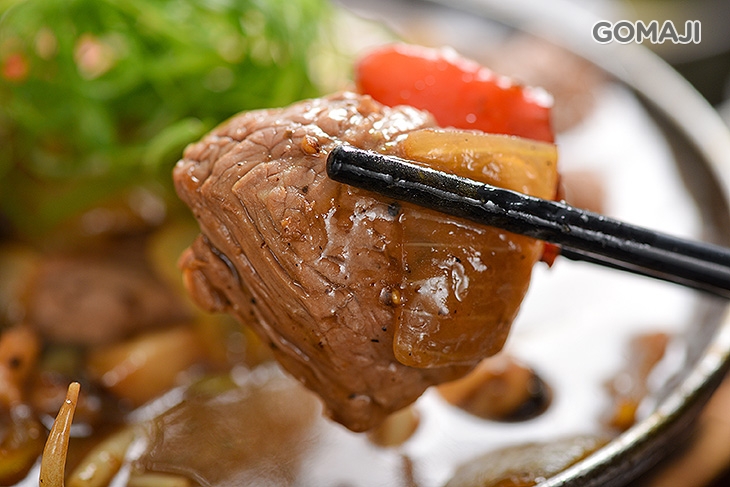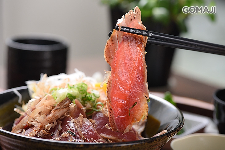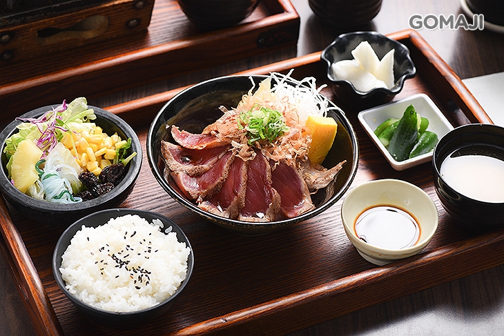大份量的鉄火丼定食端上桌就是全場焦點!以精湛刀工細膩切至適中厚度,肉片閃耀著透紅光澤,如藝術作品般,華麗又澎湃!油脂分布均勻、肉質甜美,不論直接品嚐或是沾醬享用都十分過癮!
