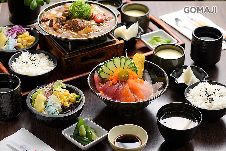 〈鉄火丼定食/盛合什錦丼定食/綜合海鮮炸物定食/軟殼蟹蘿蔓揚定食/松阪豬椒鹽燒定食/扁鱈西京燒定食/松阪豬肉薑汁定食/牛肉奶油燒定食 八選二〉