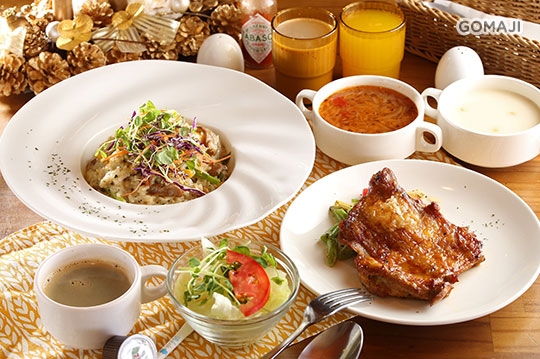 松露野菇燉飯/松露野菜義大利麵 二選一 + 主餐:義式沙朗牛排/歐式香煎雞腿排/爐烤季節時令魚 三選一 + 生菜沙拉一份 + 無限自助飲料吧、湯品