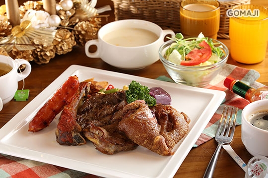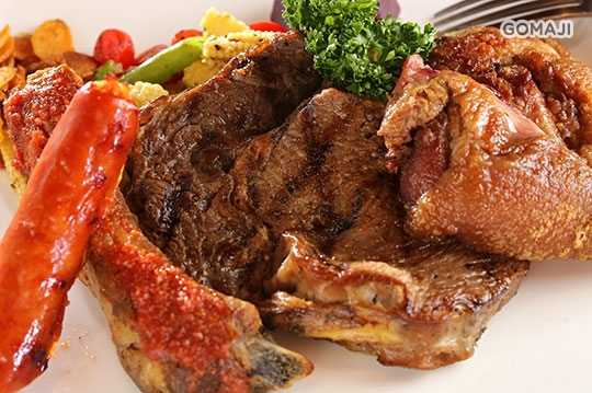 德國豬腳一份 + 沙朗牛排一份 + 德式香腸一份 + 豬肋排一份 + 生菜沙拉一份 + 無限自助飲料吧、湯品
