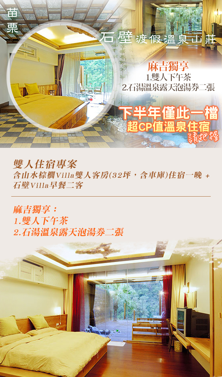 【苗栗-石壁渡假溫泉山莊】感謝麻吉們熱烈搶購,已全數賣光光。
