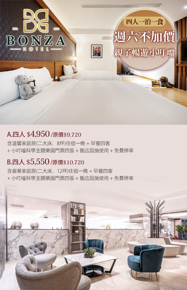 ★ 週六不加價!親子入住家庭房(二大床)附翌日豐盛早餐及小叮噹科學主題樂園門票,結合了科學與娛樂,讓孩子們在遊玩中學習,享受無窮樂趣。