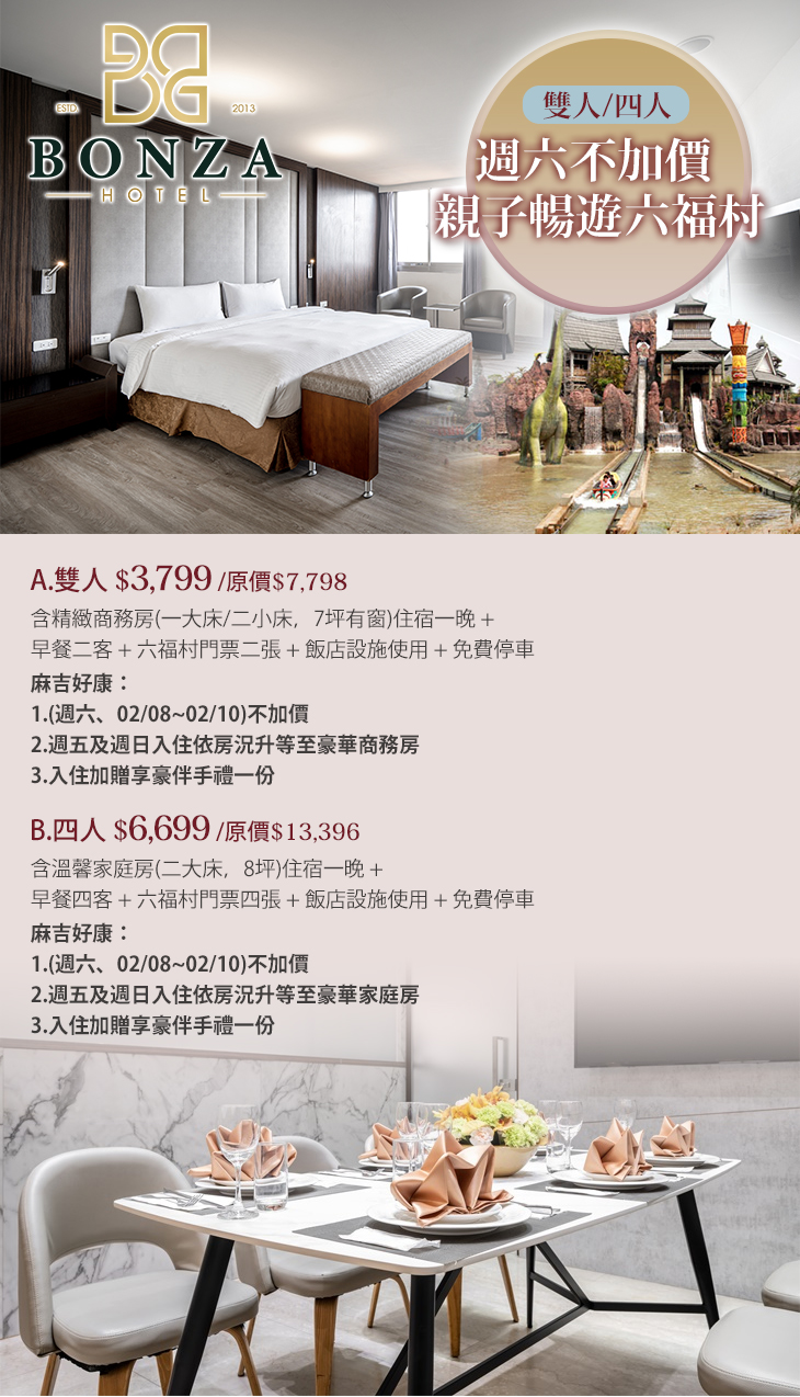 ★ 週六、2/8~2/10不加價!雙人/四人住宿,附翌日豐盛早餐及六福村門票,讓孩子們在吃飽之後,能夠盡情地大玩特玩!