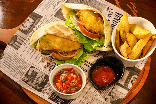 酥炸魚柳口袋餅佐番茄莎莎醬