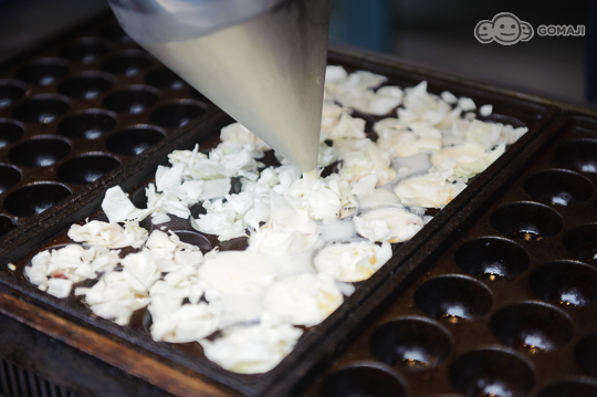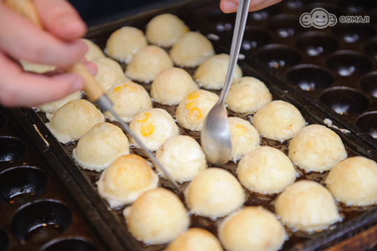 ▼看著老闆以嫻熟利落的手藝將獨家麵糊均勻的鋪在特製模具中,快速的撒上滿滿的配料,以到位的火候端出這顆顆噴香誘人的金黃尤物,現在只要58元就能享用Q彈外帶雙人餐,錯過真的會捶心肝!
