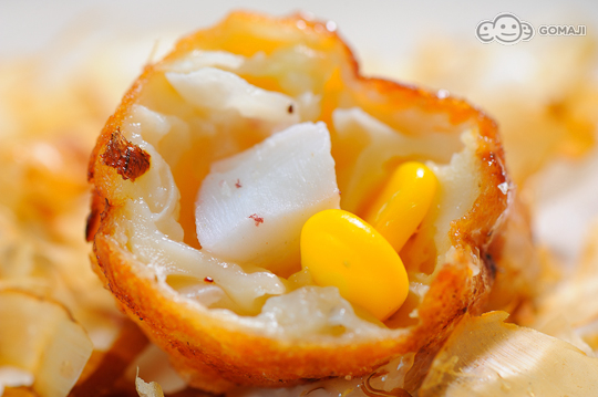 透過特製模具的烘烤,這章魚小丸子的外皮呈現出金黃微焦的可口模樣,大口咬下享受外酥內軟的極致口感,章魚的彈牙佐以玉米的香甜,融合著外層鹹香的柴魚片,層層堆疊的豐富口感讓人一吃就上癮!
