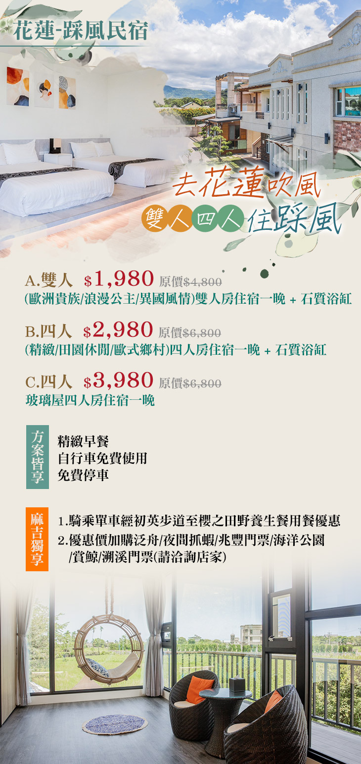 【花蓮-踩風民宿】感謝麻吉們熱烈搶購,已全數賣光光。
