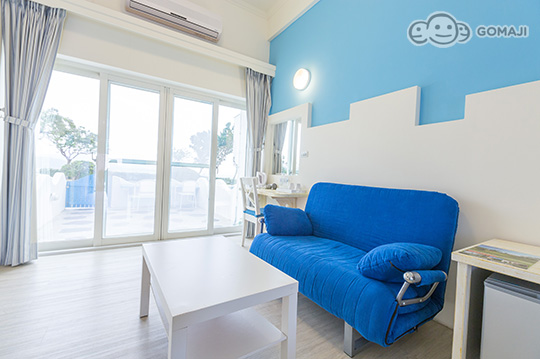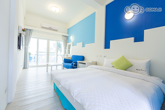 房內配有一張舒適大床、放鬆休閒沙發床、乾濕分離衛浴,坐落在庭院的海景雙人房有著最接近大自然以及海天一色美景的視覺饗宴,觀浪聽濤,享受最超值的海景假期。