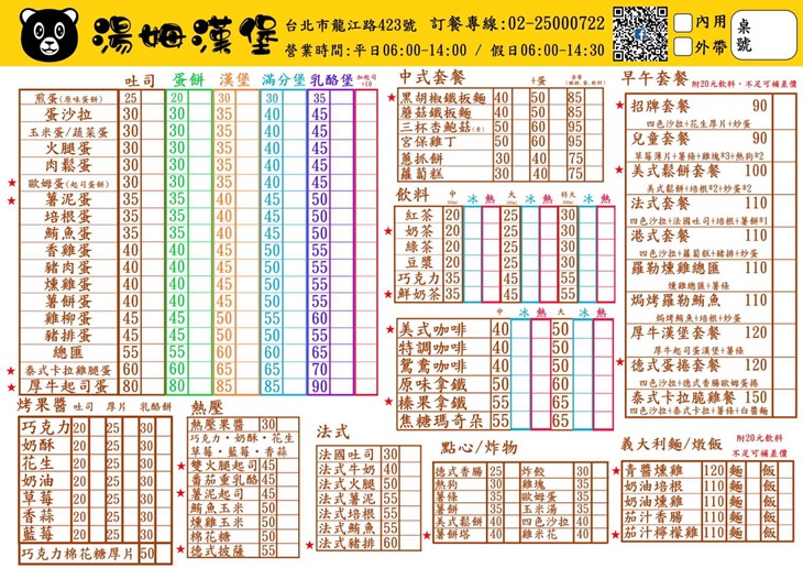台中有丹丹漢堡,台北有湯姆漢堡!位於台北市龍江路上的【湯姆漢堡】,餐點提供以法式、美式早午餐點為主。從漢堡、蛋餅、義大利麵到烤吐司,包羅萬象的品項,讓您依照心情與喜好隨心選擇!食材嚴選新鮮、衛生品質把關、用料精心實在!新鮮現點現做,將每樣食材從烹飪到擺盤,都秉持一百分的水準!本次GOMAJI團隊就為各位隱藏版美食大突擊!早午餐地點還沒著落嗎?這間大力推薦給您!趕緊揪伴來店光臨品嚐一番吧!