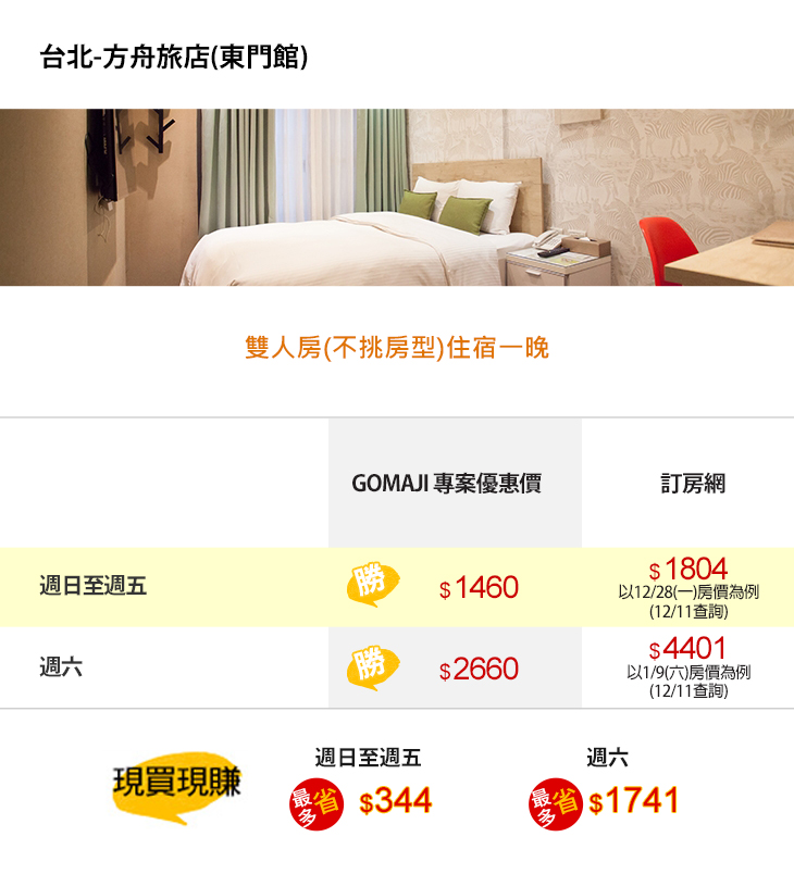 【台北-方舟旅店(東門館)】感謝麻吉們熱烈搶購,已全數賣光光。
