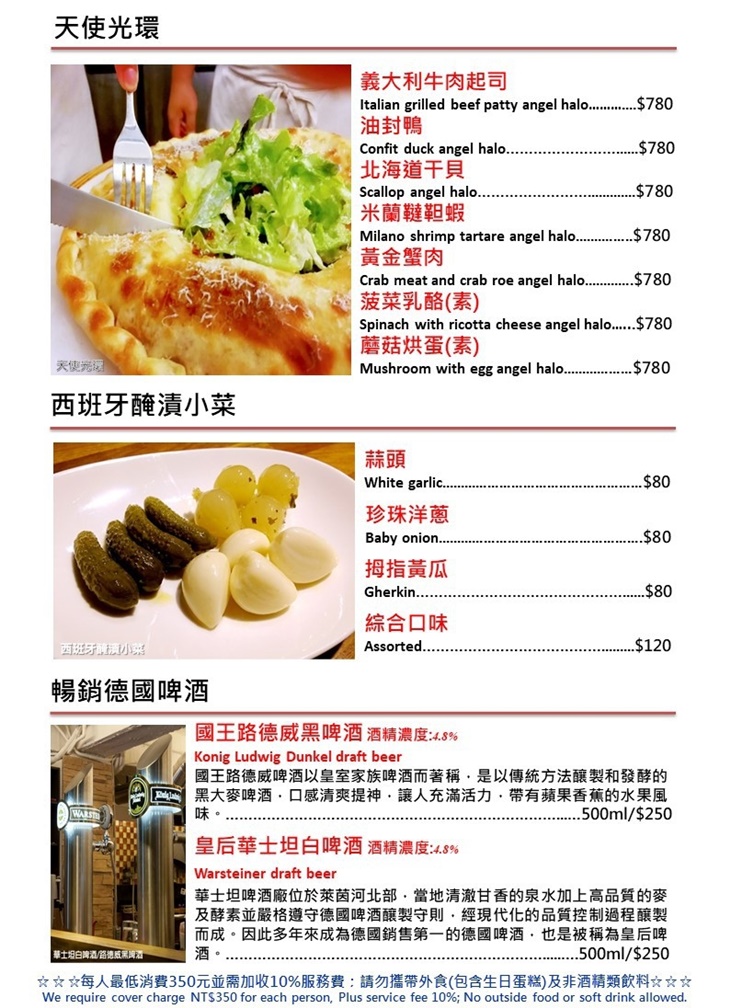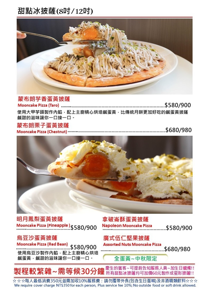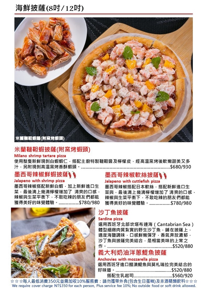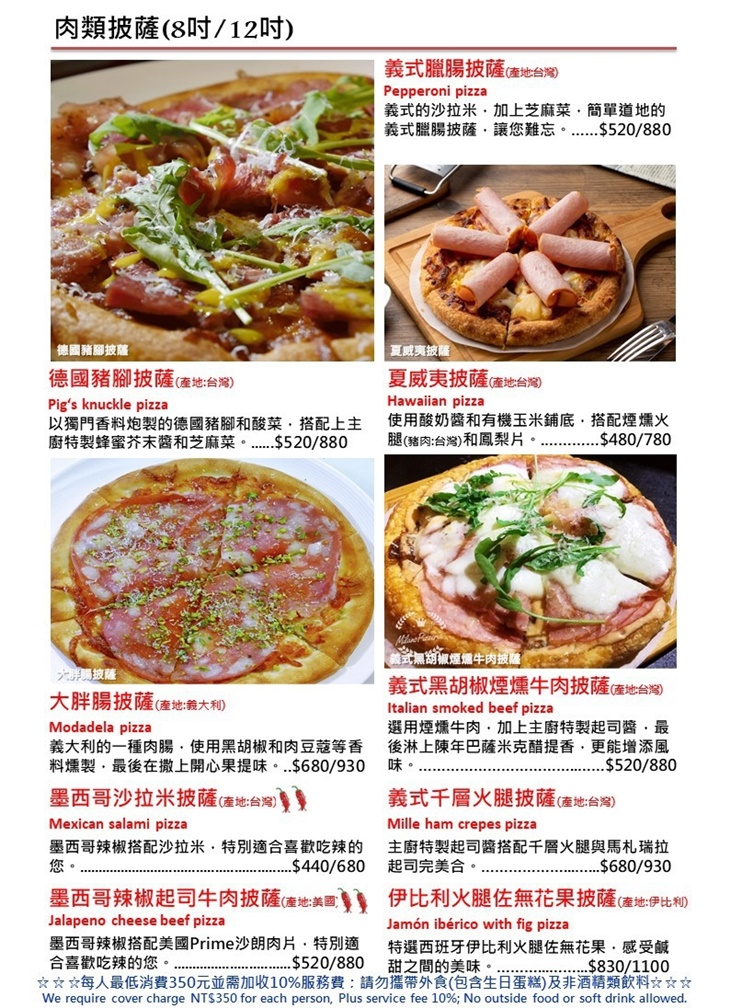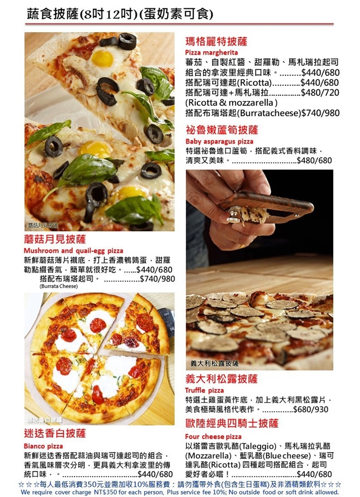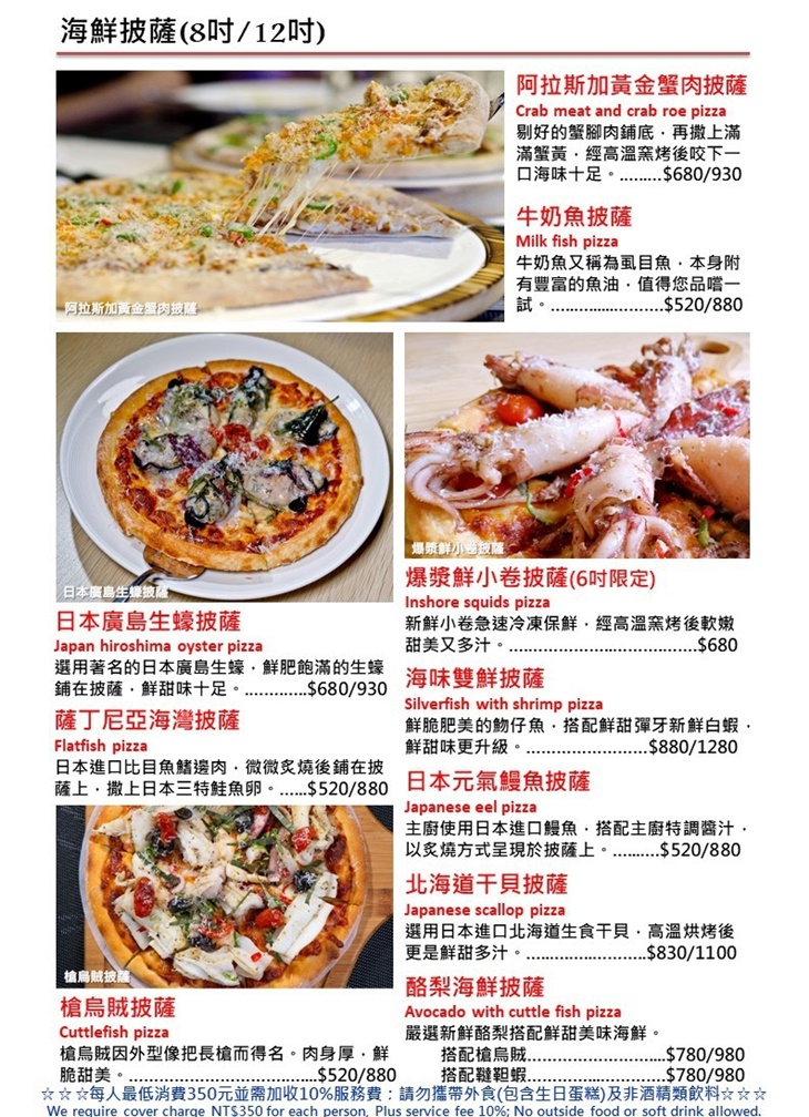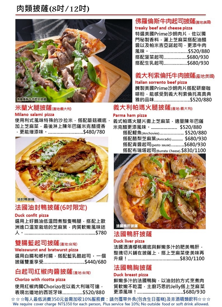 採用日本及義大利麵粉調製而成的麵皮,以新鮮酵母低溫發酵12小時,而麵皮也不是用手桿麵棍桿,是用手慢慢的揉出來的,充滿了手作溫度的餅皮,有著酥脆又帶點Q度的口感,新鮮美味,就算冷掉也超好吃,和坊間披薩真的不一樣!最後再放上澎湃味美的珍貴食材,做成獨一無二的特製創意Pizza,將披薩的「味覺」和「視覺」都掌握到最好,說是台北市最好吃的披薩真的不過分呀!