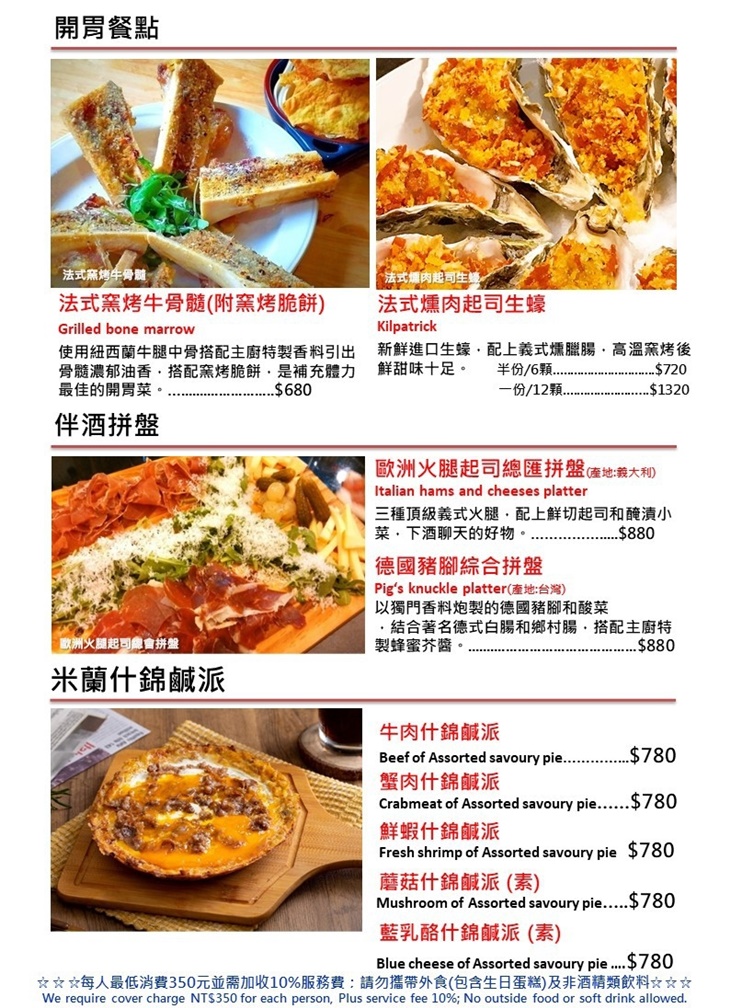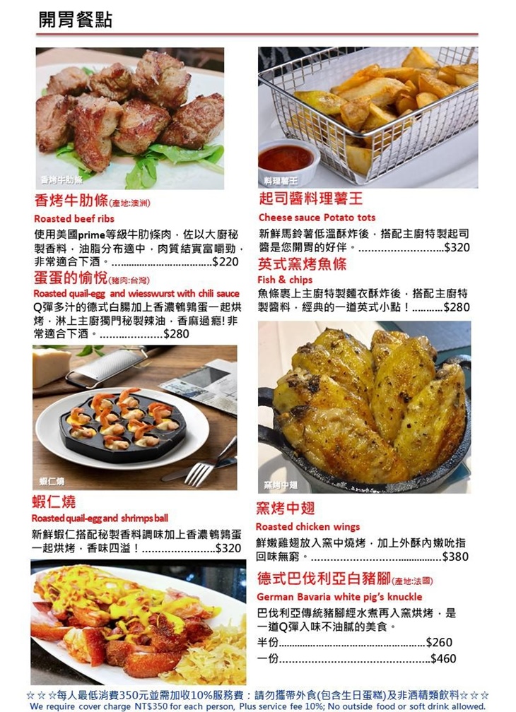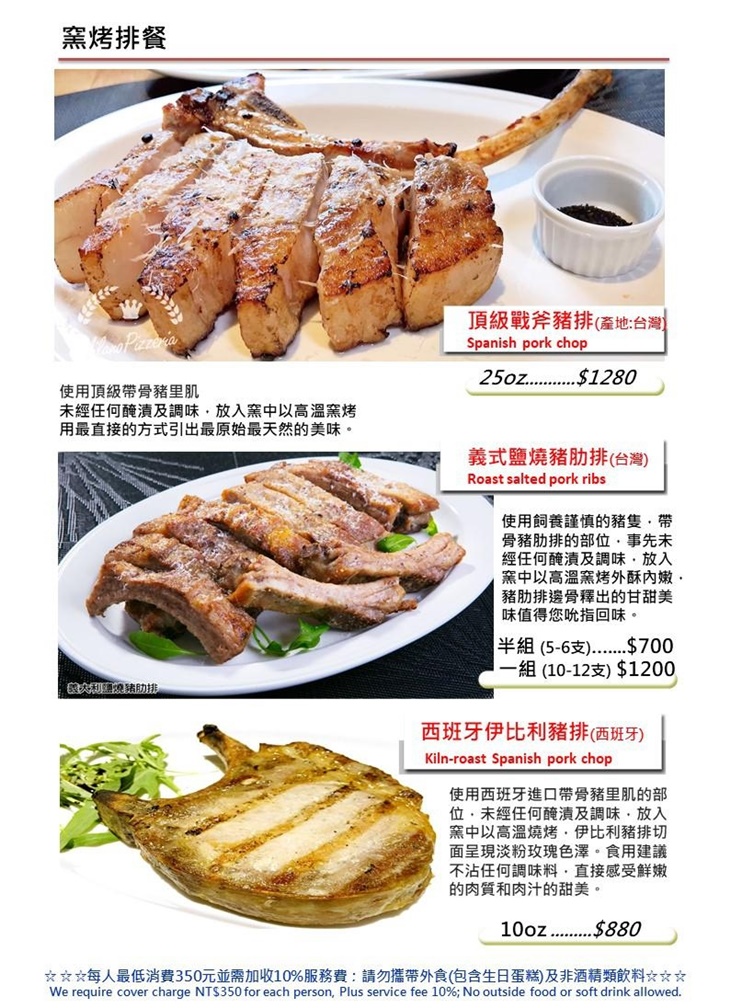 這裡是台灣少數有雙窯的餐廳,一台設定溫度在500 度以上,以爐烤肉品、排餐為主;另一台則控制在300度,專門烤披薩,老闆說這兩座窯烤爐是使用日本進口的耐火磚做成,即使去摸窯烤爐外頭的磁磚,也不會感到燙,是很貼心特別的設計。