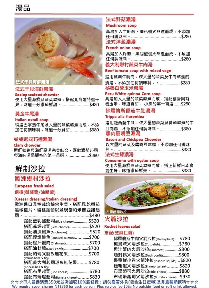 吃完一份幸福飽足的餐點,怎麼能少了一碗熱騰騰的濃湯作為完美的結尾呢?主廚費心費時熬煮的起司巧達濃湯,香甜濃郁、奶香四溢,裡頭還加入新鮮蛤蜊增添口感層次,讓整碗濃湯除了迷人的奶味外,還喝得到海味鮮甜,暖到心頭的好味道讓人倍感滿足!