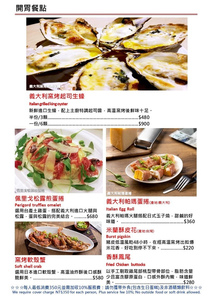 使用國外頂級新鮮食材入菜,用料不手軟的態度,讓顧客能品嚐到食材的鮮美與精緻。