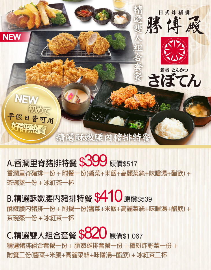 ※ 附餐:醬菜、米飯、高麗菜絲、味噌湯皆可續點