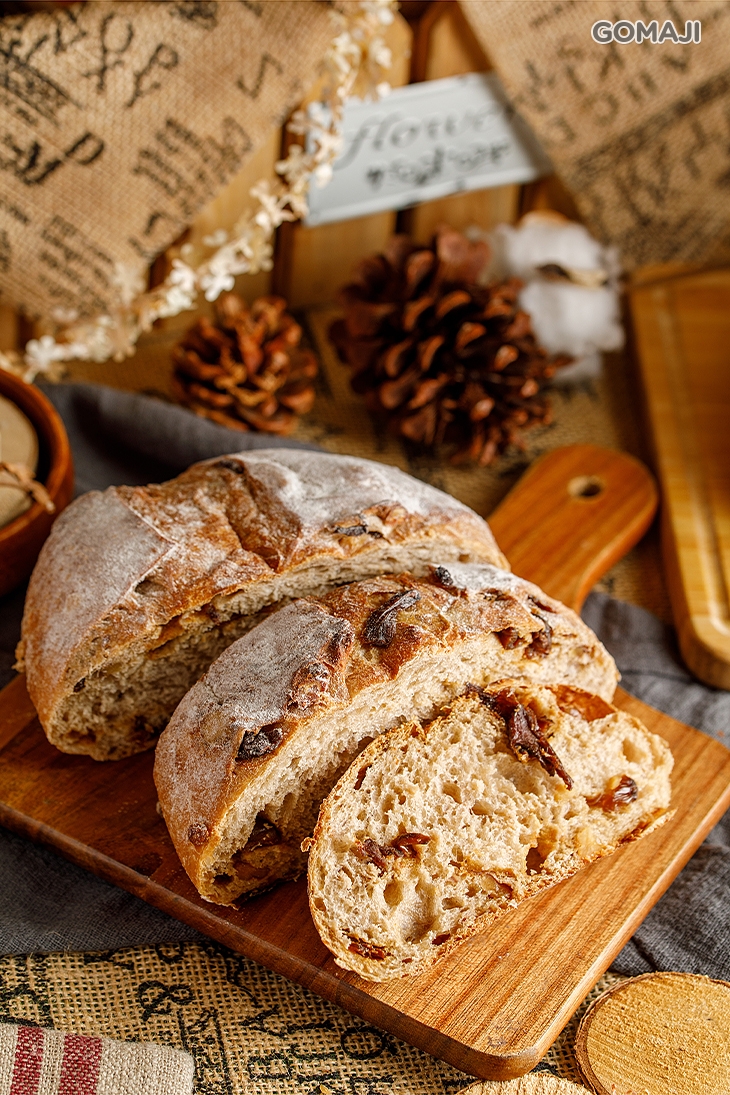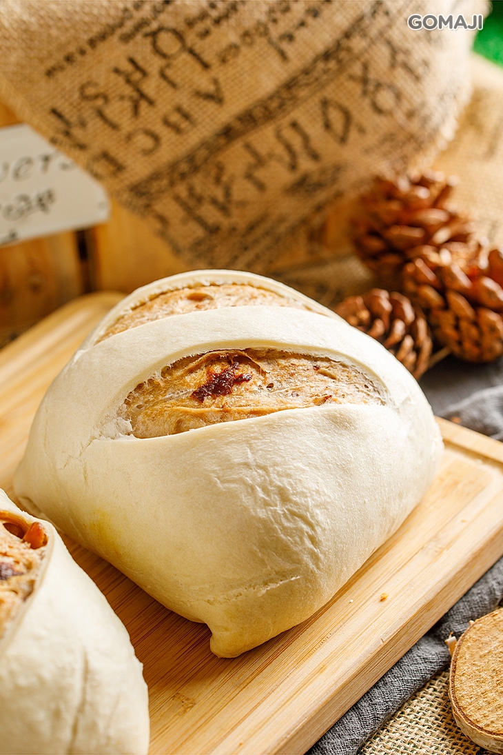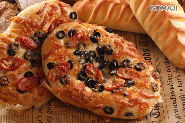 義大利人最喜愛的家常麵包之一,選用高品質食材,黑橄欖、番茄等,外皮微焦微脆,內裡的麵包帶些嚼勁與Q彈。